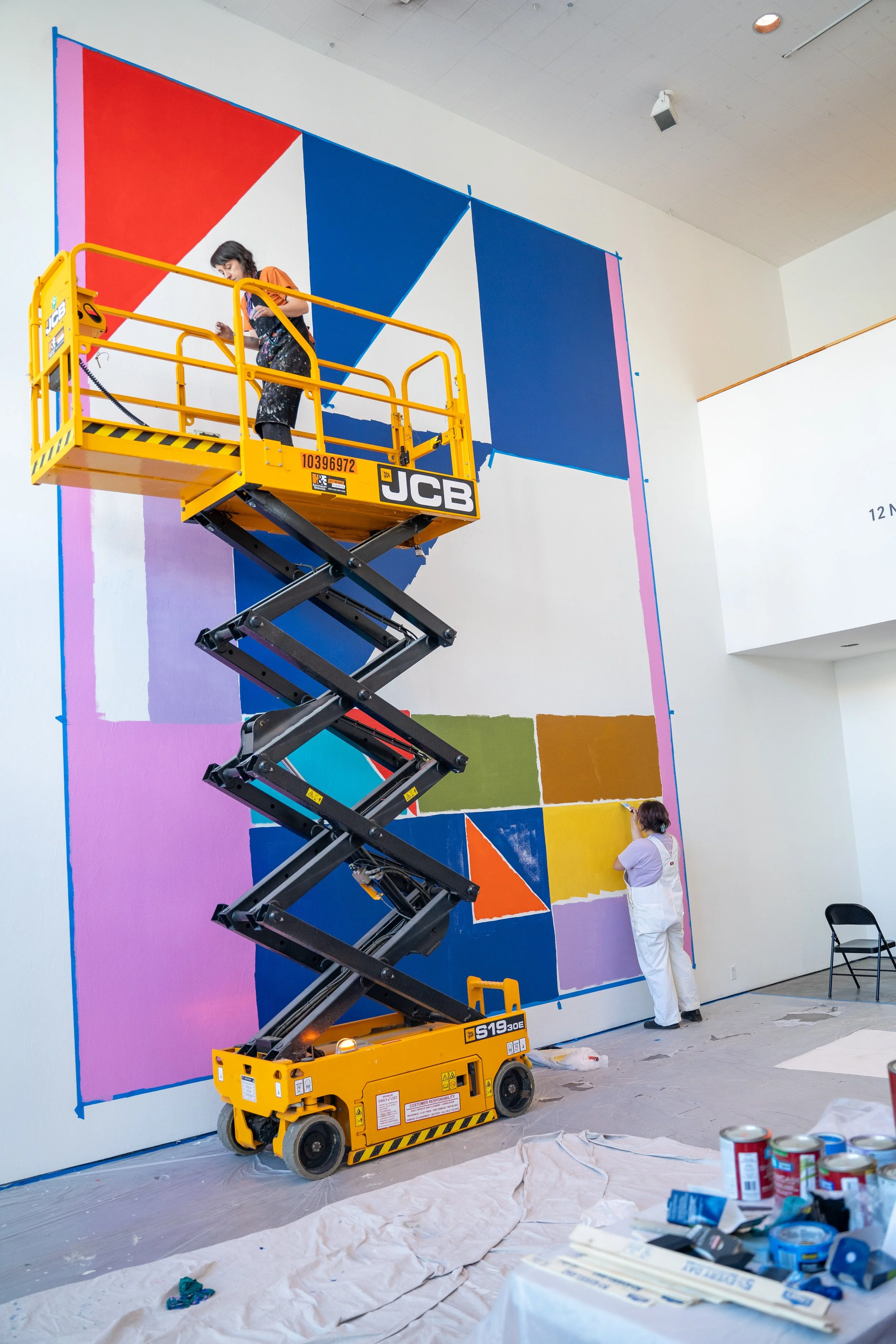 Mural painting team included Lucia Noll-Upshaw (UNM BFA 2023) and Lana Scholtz (UNM MFA 2025).